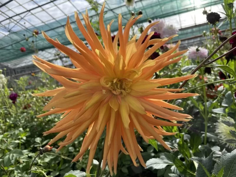 Dahlia ‘Wagschal’s Krone’ is a dramatic cactus variety, admired for its fiery orange-red blooms with long, pointed petals that give a bold, starburst effect. This vibrant dahlia makes a stunning focal point in the garden, bringing warmth and intensity to summer borders. Its strong stems and striking flowers also make it a superb cut flower for high-impact arrangements.